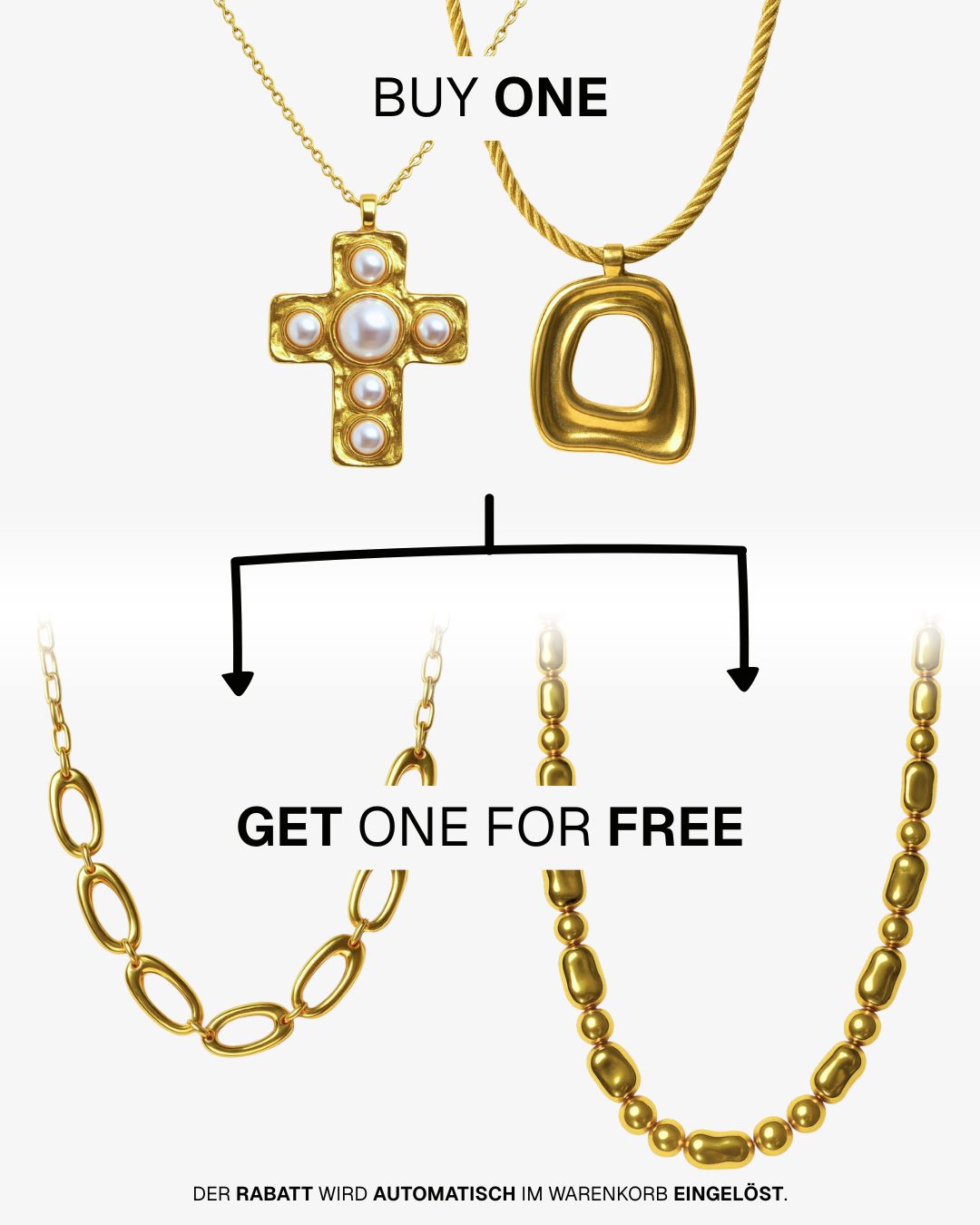 Die Kette "Lucia" ist ein echtes Statement-Piece mit Strahlkraft. Die gedrehte Kordelkette in leuchtendem Gold trägt einen skulpturalen Anhänger mit organischer, fließender Form und charakteristischer Öffnung. Dieses Design verkörpert moderne italienische Schmuckkunst und zieht alle Blicke auf sich. "Lucia" ist die ideale Wahl für selbstbewusste Persönlichkeiten, die außergewöhnlichen Schmuck mit künstlerischem Anspruch schätzen.